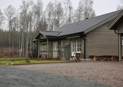 Vi använder endast noggrant utvalt småländskt furutimmer där större delen av råvaran kommer från hyggesfritt skogsbruk, en skogsbruksmetod som tar extra hänsyn till biologisk mångfald och naturens kretslopp. Vi sågar timret i vårt eget sågverk i Barkäng, strax utanför Aneby, och bygger sedan huset på plats med hantverksmässig precision, traditionella tekniker och moderna lösningar. Alla våra timmerhus tillverkas spontat furutimmer – ett hållbart och stabilt material som ger ditt hus en naturlig värme och gedigen känsla.