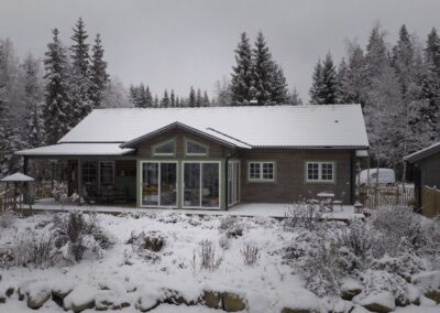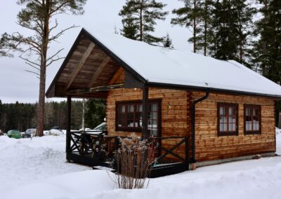 Vi använder endast noggrant utvalt småländskt furutimmer där större delen av råvaran kommer från hyggesfritt skogsbruk, en skogsbruksmetod som tar extra hänsyn till biologisk mångfald och naturens kretslopp. Vi sågar timret i vårt eget sågverk i Barkäng, strax utanför Aneby, och bygger sedan huset på plats med hantverksmässig precision, traditionella tekniker och moderna lösningar. Alla våra timmerhus tillverkas i 45×145 mm spontat furutimmer – ett hållbart och stabilt material som ger ditt hus en naturlig värme och gedigen känsla.